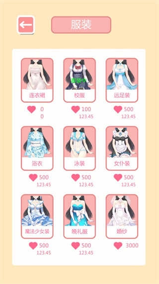 收集到的爱心能够兑换风格各异的服装,包括学院风、女仆风、婚纱等不同类型。