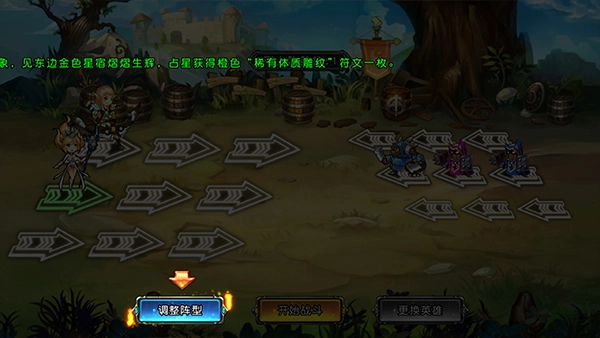 4、进入游戏后,需对战斗阵型进行调整,将游侠移至最前方,随后点击开始战斗。