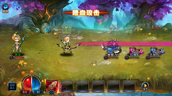 5、进入战斗后,等轮到我方回合时,点击下方的状态栏来释放技能,蓝量足够的话就能直接使用技能;