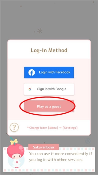 1、玩家进入三丽鸥明星的微笑小镇SweetDays后,可直接挑选登录方式,开启游戏之旅。