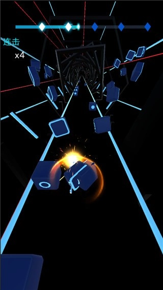 4、游戏过程中会出现一堆节奏方块,只要对准它们直接劈砍就可以了,劈砍得越精准,连击数就越容易叠高。