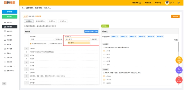 3、完成试题、答案及解析的编辑后,选择对应的章节和难度级别,即可成功导入一道试题。