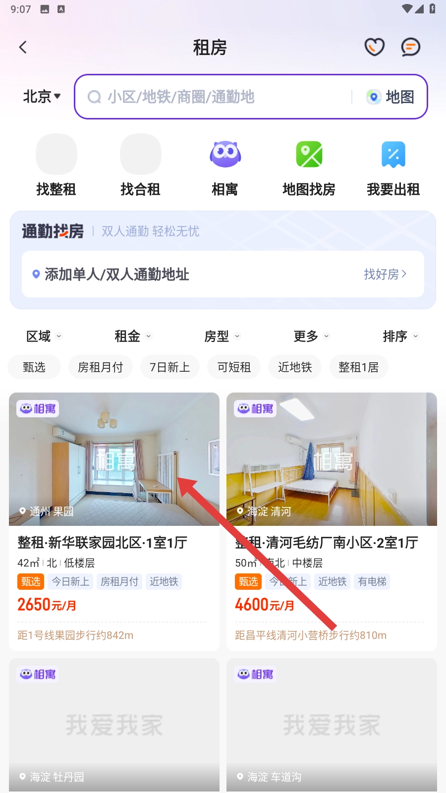 4、地图找房:支持地铁、附近、小区、通勤等多种找房方式。