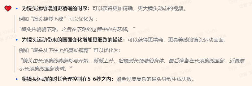 在基础公式上补充镜头信息和氛围感信息可以更加精确控制视频,生成动态更强或风格化更明显的视频。