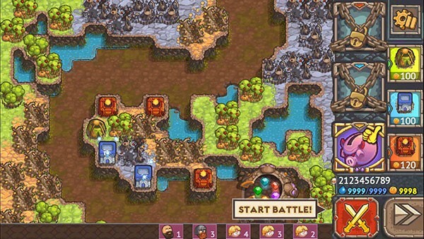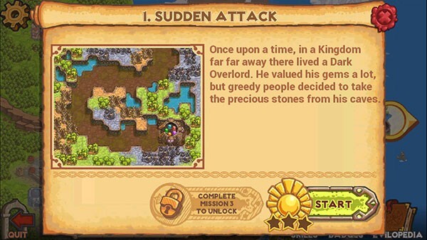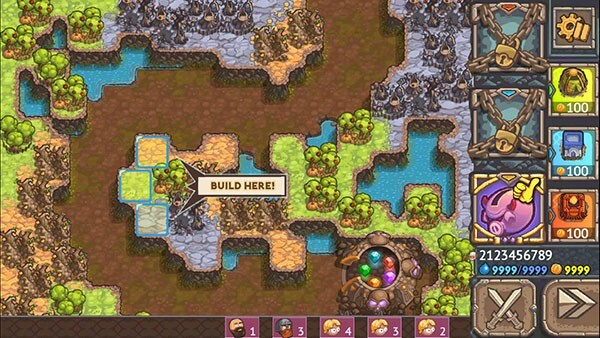 1、这款游戏是卡通风格的塔防类游戏,背景设定在藏有一堆宝藏的山上,众多觊觎宝藏的人对其虎视眈眈,而你作为宝藏的守护者,需要借助塔防的方式来阻拦敌人夺取宝石。