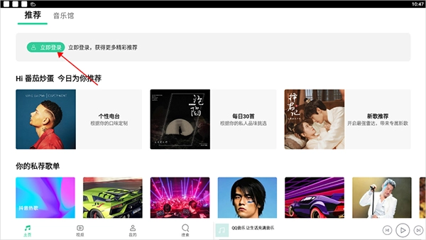 1、启动软件并完成登录后,可在主页直接点击每日推荐歌曲进行播放