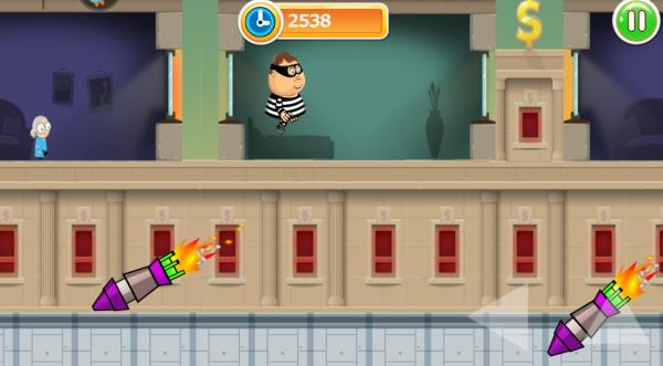 1、这是一款简单轻松的休闲游戏,游戏讲述了一个悲催的上班族爸爸不幸的被公司“炒鱿鱼”了,为了家里的妻子和孩子被迫当上了银行大盗。