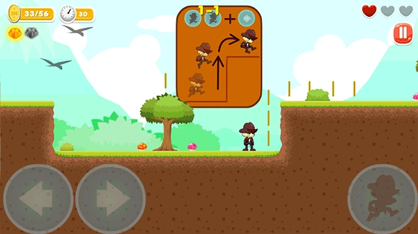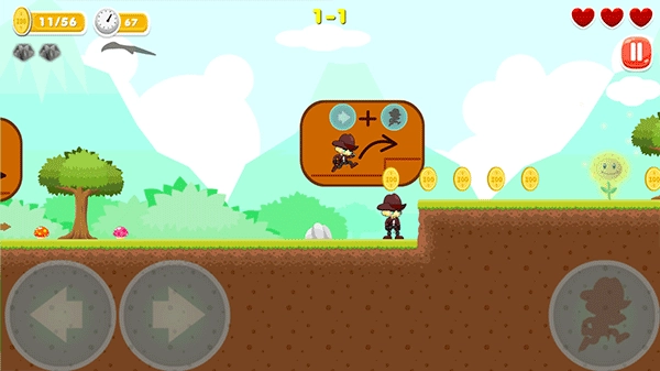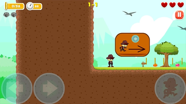 3、遇到悬空的障碍物时,需要按住右箭头键,同时连续按两次跳跃键来控制角色跳过去