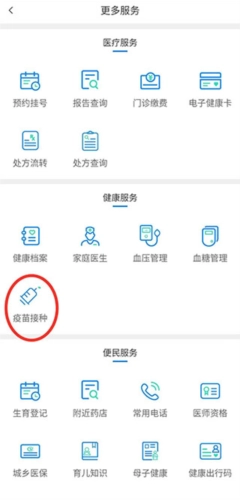 5、【计划免疫】 支持在线查看个人疫苗接种记录,查询周边的疫苗接种点信息,同时能够在线接收疫苗接种的提醒服务。