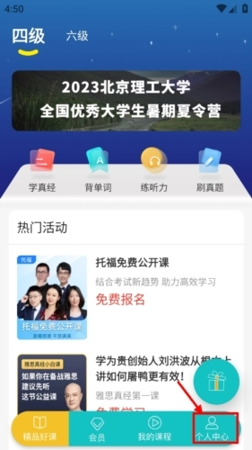 首先用户可以在本站最新版的四六级必过,打开好的应用后点击右下方的“我的”窗口。