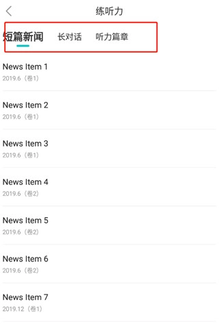 1、打开在本站下载的软件,进入首页后,选择你想要学习的等级和对应的学习板块,比如我们可以选择练听力这一板块;