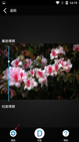 2、在高级选项里手动设置照片模糊程度。