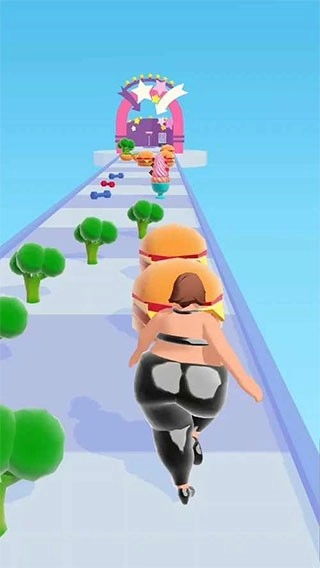 2、游戏内设有海量关卡供玩家挑战,不同关卡场景中会出现绿色蔬菜、健身哑铃、冰淇淋、汉堡等各类高热量食物。当玩家收集到高热量食物时,角色会逐渐发胖;反之,若收集绿色蔬菜,就能帮助角色塑造出完美身材。