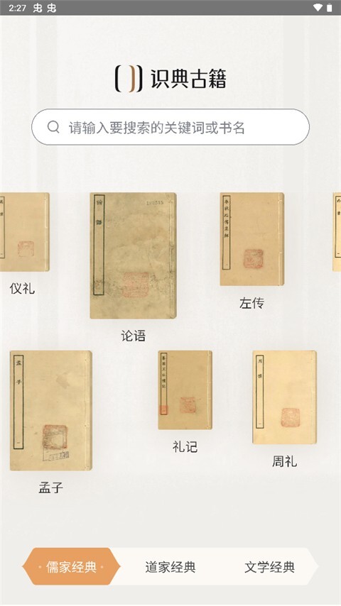 1、打开软件进入主页,可以直接搜索需要的典籍。