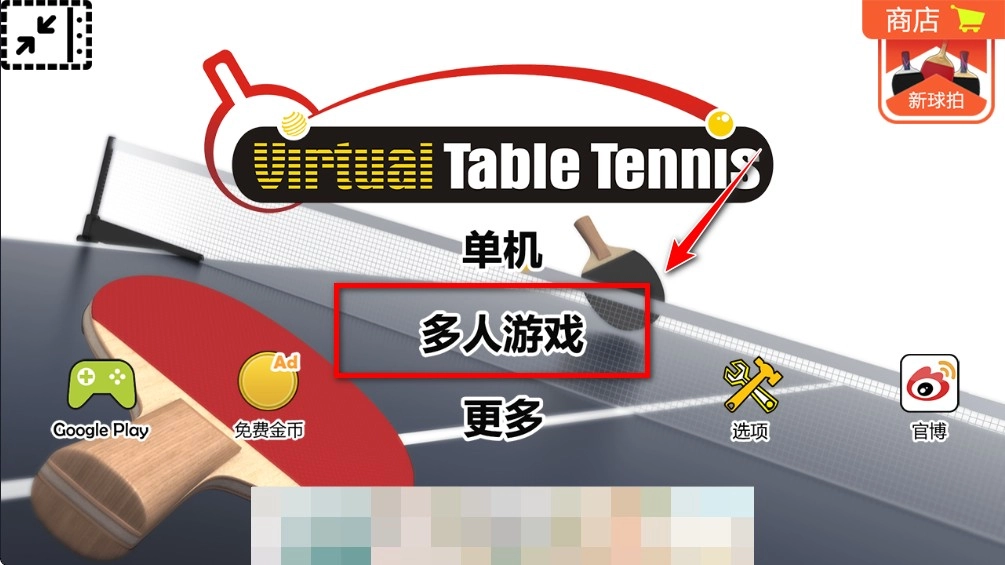 1、点击虚拟乒乓球中文版首页的多人游戏模式。