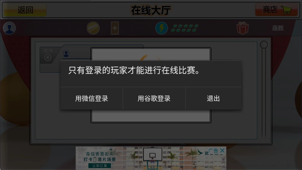 4、如果是在线对战模式,需要先授权登录微信或谷歌账号,登录成功后就能创建房间并邀请好友一起游玩。
