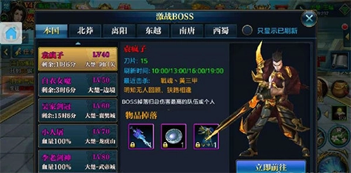装备主要获取渠道还是打国家boss,可以爆蓝绿橙装备如果出了橙色这阶段装备都不用愁了,橙色多的话可以合成红色。40级之后可以看到boss页面,每天定时去打。运气不是很差一套橙很快。