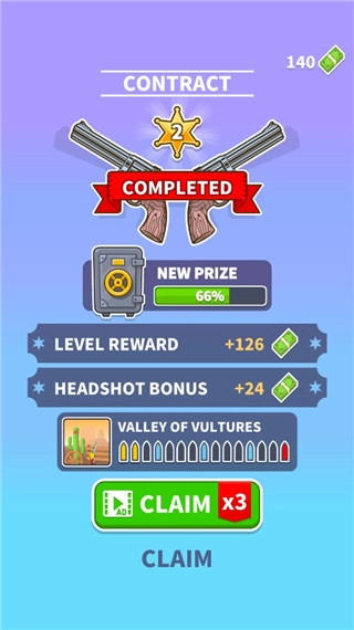 2、每个关卡配备固定数量的子弹,玩家必须在子弹耗尽前消灭所有敌人方可通关。