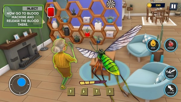 1、玩家需要运用策略与潜行技巧躲避老奶奶的追捕,同时伺机发起叮咬,这一过程十分考验智谋。