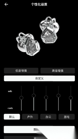 2.软件功能涵盖高音增强、重低音增强、户外模式、工作模式、游戏模式以及EQ自定义设置等选项,能够为用户打造专属的个性化听觉体验。