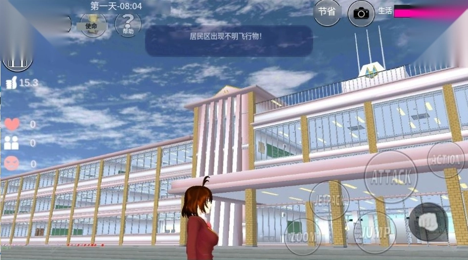 首先要说明的是,部分任务不存在时间限制,而有些任务仅在特定时间段内才会触发。因此,若想完成那些有时间限制的任务,需要手动调整时间,这一功能在左上角的系统设置中即可找到。 击败不明飞行物的步骤如下:先将时间调整至晚上21点,前往咖啡馆附近,点击“飞行”按钮,上升至与楼层高度相近的位置,随后环顾四周寻找飞行物,找到后使用武器发起攻击。需要注意的是,飞碟的攻击模式较为固定,躲避起来相对容易。