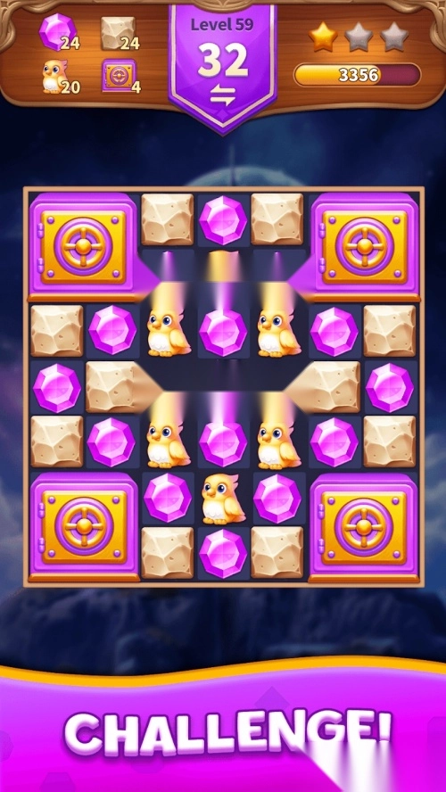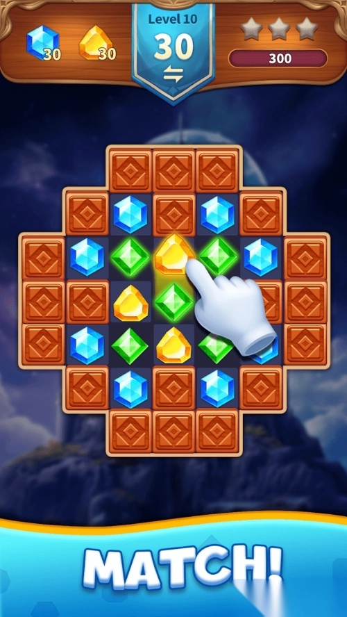 2. 拥有海量独具匠心的关卡设计,玩家需在限定步数内尽可能多地消除宝石,累积的分数会随着消除数量的增加而不断提升。