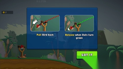 2. 首先是要用手指滑动屏幕弹射小红鸟。