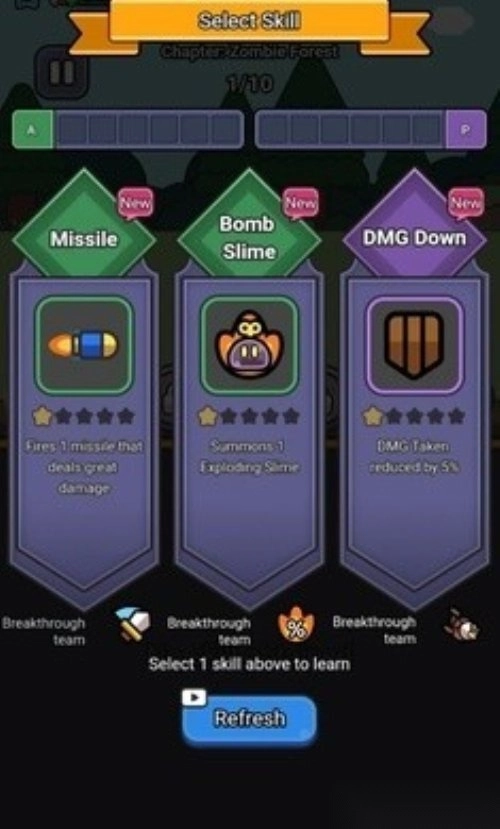 2. 玩家能够依据战局挑选技能,像史莱姆炸弹、飞弹、毒药攻击之类,来迅速歼灭僵尸大军。