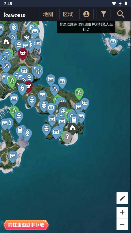 1、最新版幻兽帕鲁地图资源查询器可在地图上标注游戏内的各类资源点,帮助玩家更快捷地定位到自己需要的资源。