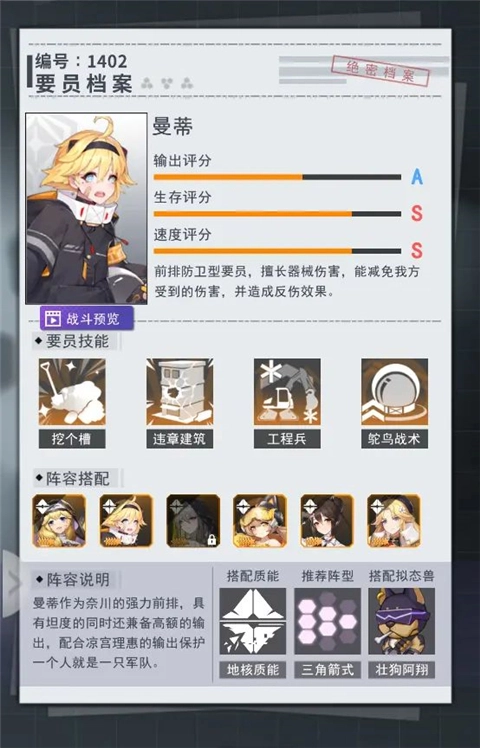 推荐理由:曼蒂毕生都在追寻最具安全感的事物,是奈川阵营中防守反击战术的核心成员。她的一技能在自身生命值高于特定数值时,能对敌方造成基于自身生命值上限百分比的真实伤害;二技能则可对敌方全体造成与自身防御值成比例的真实伤害。此外,每回合开始之际,若曼蒂的生命值低于一定数值,她还能按比例恢复自身生命值。将防御属性叠满的曼蒂,无疑是奈川团队的坚实铁闸,尽显一夫当关、万夫莫开的气势。