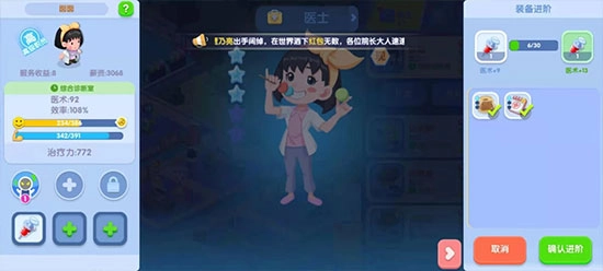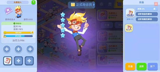 - 借助升星系统增加医术值。招募员工后,用等级低的员工来升级其他员工,另外还能通过考取证书进一步提升医术水平。