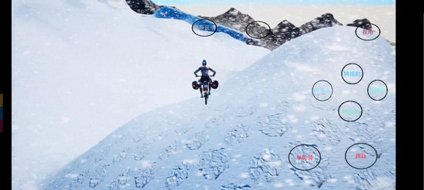 屏幕右侧排列着若干按钮,每个按钮旁都配有中文说明,像单轮骑、跳跃、左移、右移之类的功能都有对应的按钮。只要点击这些按钮,就能完成相应的操作。
