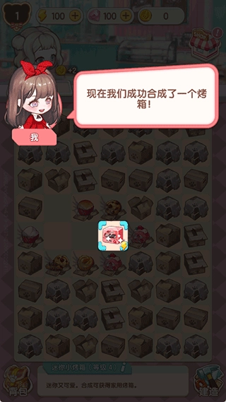 4、餐厅操作台上散落着不少棋子,这些棋子能用来随机消除,进而合成餐厅所需的各类设备。