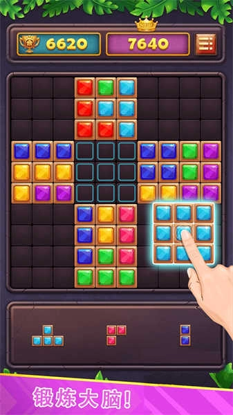 1、趣味十足让人沉浸其中 拖动不同形状的方块放入棋盘内。