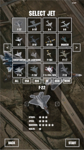 多样的战机选择:喷气式突袭行动里有丰富的战机类型供玩家挑选,能契合不同玩家的偏好。游戏中的战斗机、轰炸机、攻击机等品类齐全,玩家可依据自身喜好来选择最适配的战机。