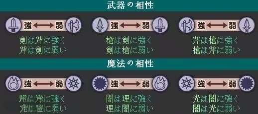 在魔法属性中,暗属性克制理(炎、风、雷、冰无克制关系),理克制光,光又克制暗;特别地,弓与风魔法对飞行单位具有显著优势