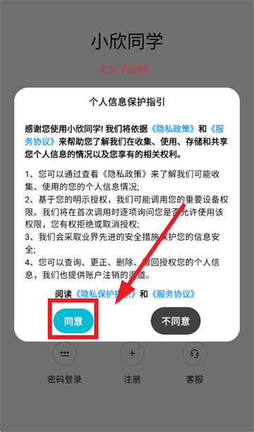 安装并打开小欣同学,先同意个人信息保护指引