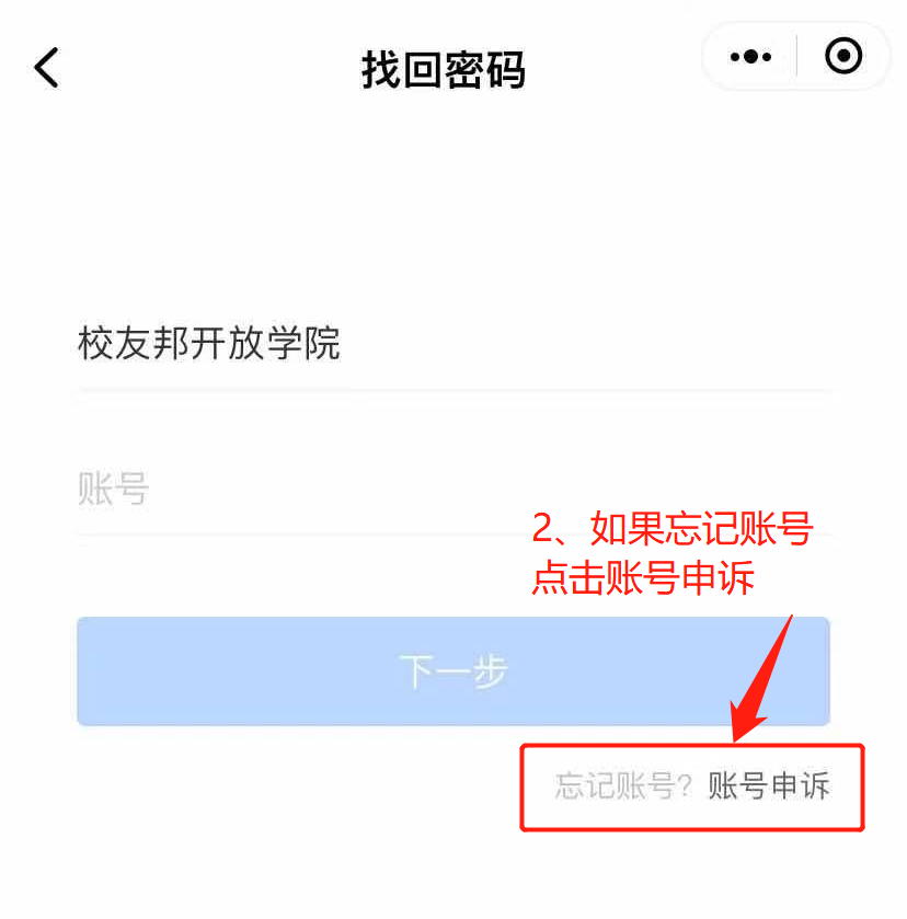 2、忘记校友邦登录账号,可在登录页面;
