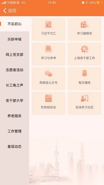 上海老干部这款软件是专门面向上海市退休老干部打造的综合性平台,融合了学习交流与生活服务两大核心功能。退休老干部们借助该平台,既能学习党建相关知识、及时了解国家最新的政策与发展动态,也能在专属的社区空间里和其他老同志沟通交流、发起并参与各类文体活动,让退休后的生活变得更充实、更多彩。