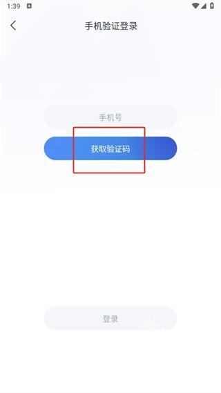 2、然后在手机验证登录的页面中我们输入上手机号后点击【获取验证码】;