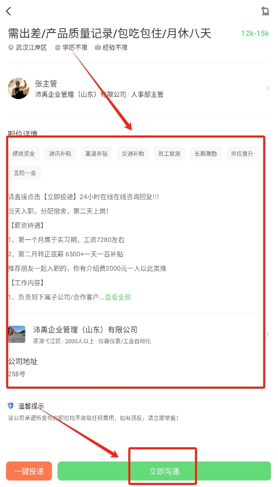 3、觉得合适就直接点最下面的立即沟通按钮,简历就会自动投递给招聘公司了。
