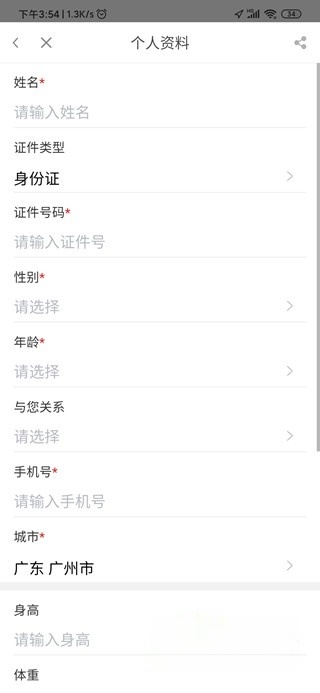 3、若为本人进行实名认证,可在预约挂号环节选择“本人”选项,再依据提示录入上述信息即可。