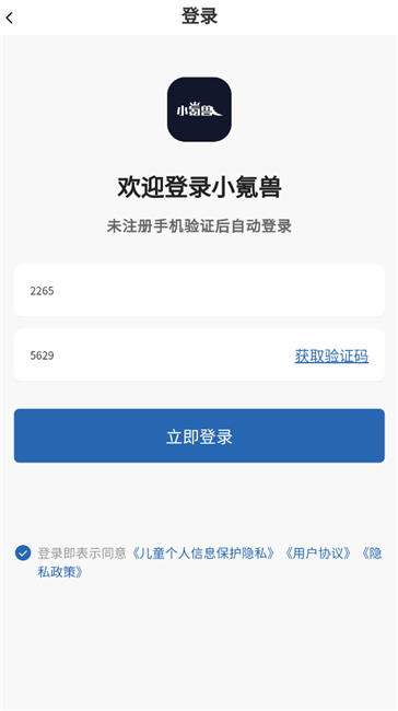 3、接着会跳转至登录页面,输入手机号码和收到的验证码,勾选页面下方的用户协议与隐私政策后,即可登录进入。