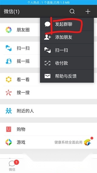启动应用后,点击界面右上角的加号图标,选择发起群聊选项。