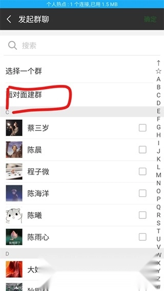 或者直接从通讯录勾选想要群聊的联系人,点击完成按钮即可建立新群。