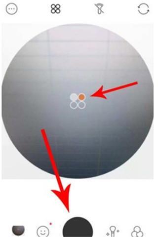 4、点选后,拍摄界面变成圆形,中心的图标为拼图效果图示,可见当下我们要拍摄的是图标左上第一张照片,点击界面下方的拍摄按钮,即可完成拍摄。