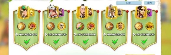 受到天赋和技能影响,英雄们的定位也有所不同,比如打野(PVE)、野战输出、生存、辅助、集结、驻防、采集等。
