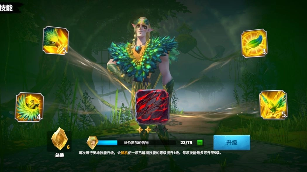 技能是决定英雄强度和定位的关键,每个英雄都拥有四个技能,且最高等级均为五级,史诗和传说英雄额外拥有一个觉醒技能(觉醒技能需要英雄达到40级并且前面所有技能满级才能激活)。