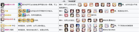 4、道中一队和大世界一队都承担着所有道中的作战任务。根据自身的实际需求,可以选择能提升刷图效率的速刷队、参与boss轮战的攻坚队、能全自律应对据点或追求省资源逆压制的对策队,或是加入练级舰船、刷科研舰船的练级队等。对于普通玩家而言,这支队伍也需要应对几乎所有的道中场景。通常情况下,需要把强力舰船优先留给攻坚主力队,所以道中队伍不会使用太强的舰船,萌新玩家尤其如此。度过游戏中期后,可以在道中一队里加入强力舰船,以提升刷图速度和破敌能力。一般来说,道中一队需要配备奶妈;由于它是出击频率最高的队伍,通常可以携带一些提速策略,萌新玩家默认搭配独角兽改即可。