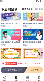 1、提供韩语双会员永久使用权益,包含真人视频课、趣闯关与翻译通模块,覆盖多主题的韩语学习课程。